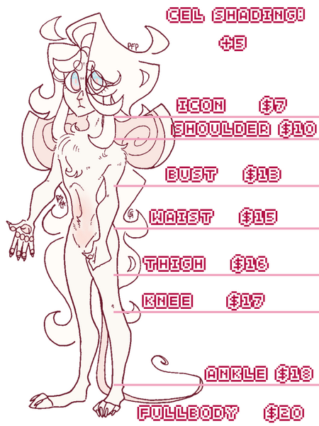 ⋆ Humanoid/anthro characters only. Includes hardcore and softcore. Subjects of my DNI are blacklisted. May include up-charge.⋆⋆ Additional figures start at 1/2 price each. Exceptions may vary.⋆⋆⋆ May also include an up-charge depending on complexity. I will do what I can to the best of my ability.